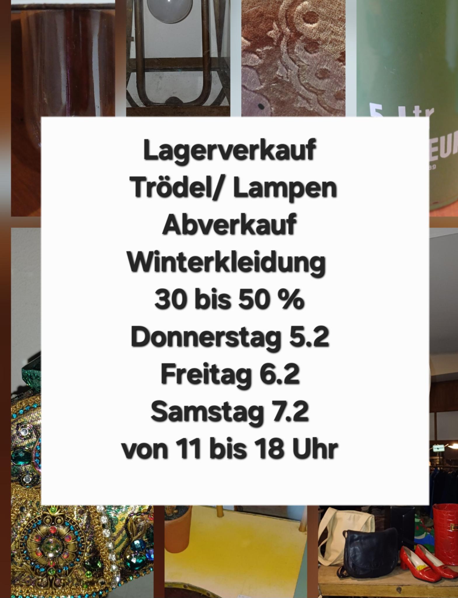 Im Februar haben wir unserem Lagerverkauf am Donnerstag 5.2, Freitag 6.2 und Samstag 7.2. von 11 bis 18 Uhr.